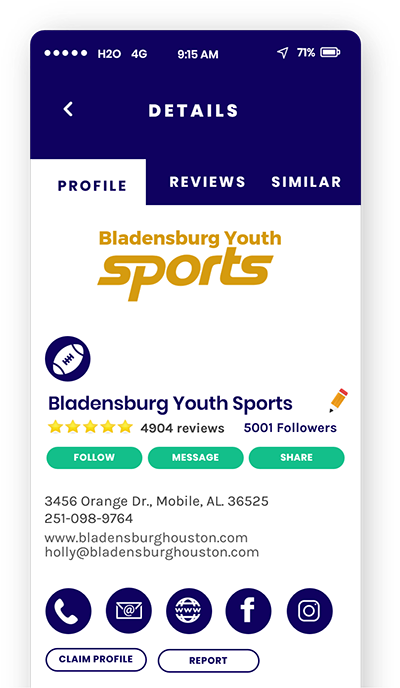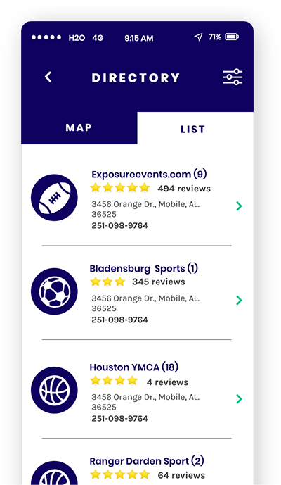 - Business Directory: Get discovered by local athletes.
